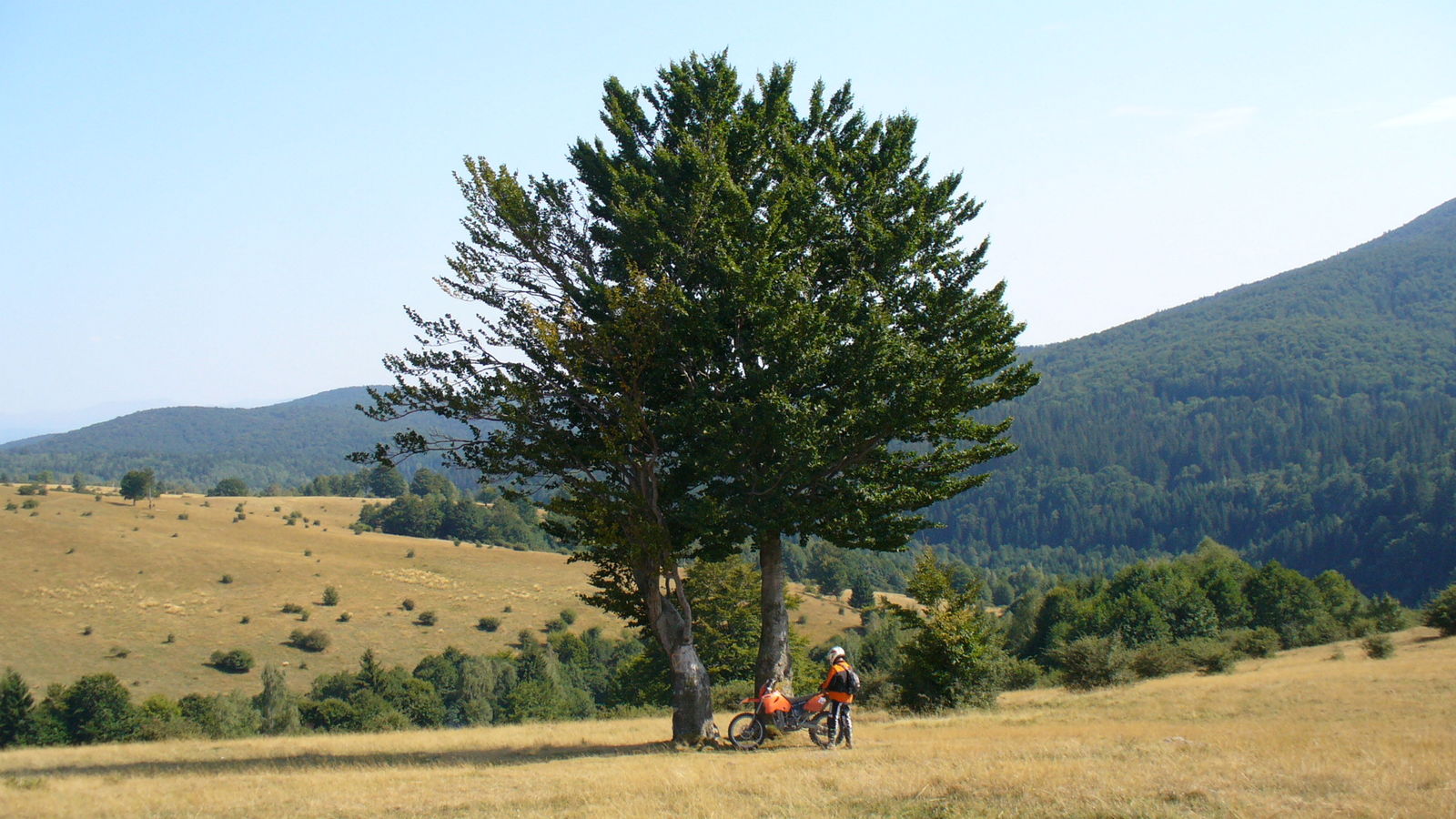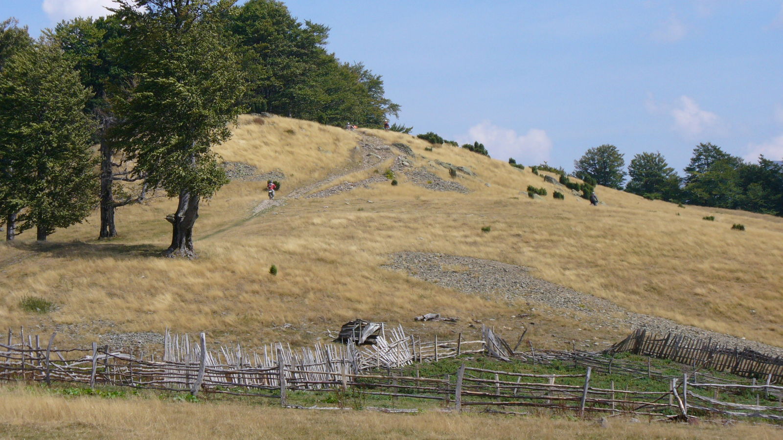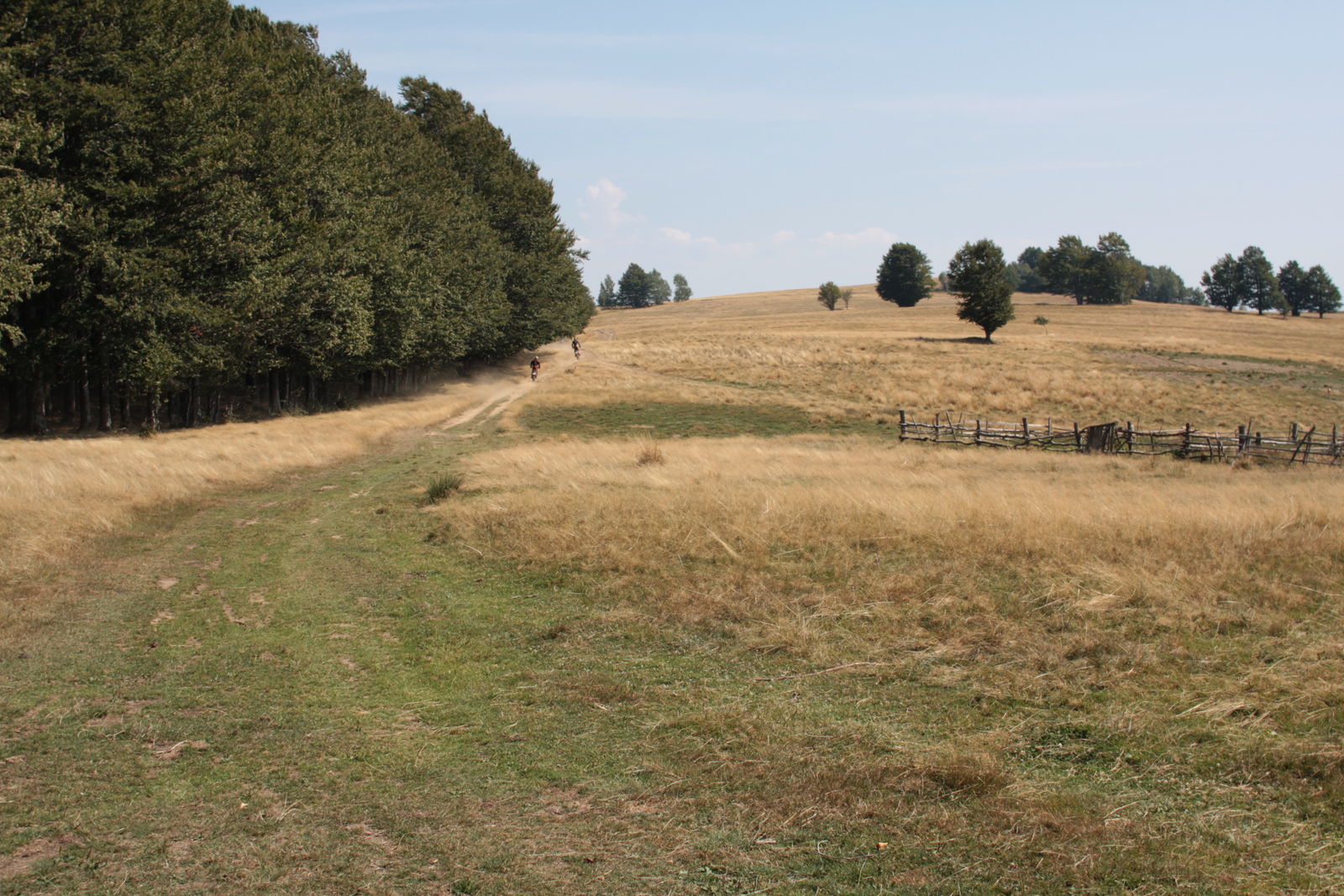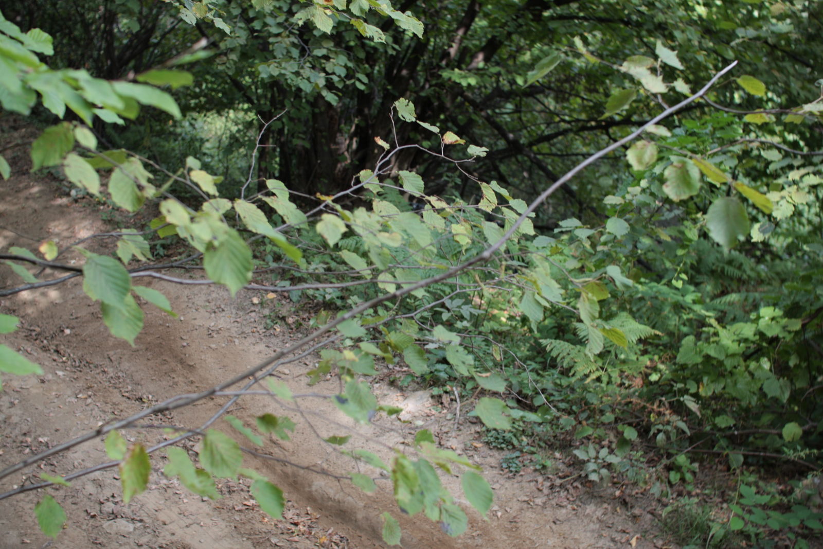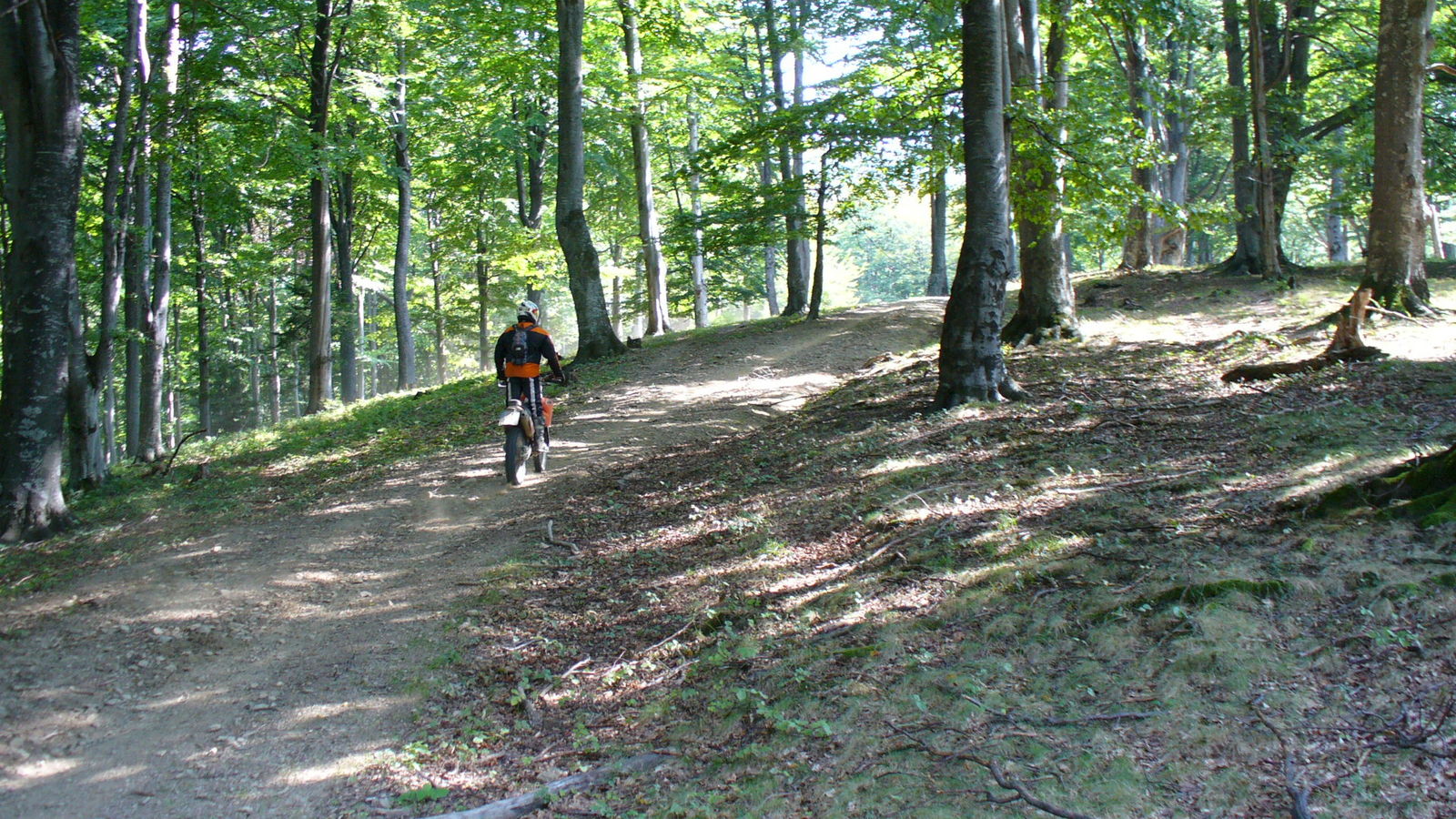 Belohnt wurden wir für die Mühe mit einer langen, langen Auffahrt durch einen schönen Wald. Oben ein schön zu fahrender Kamm, dann wieder eine geröllige Abfahrt, die mir zum Horror wurde und zu einem heftig schmerzenden Knie verhalf.