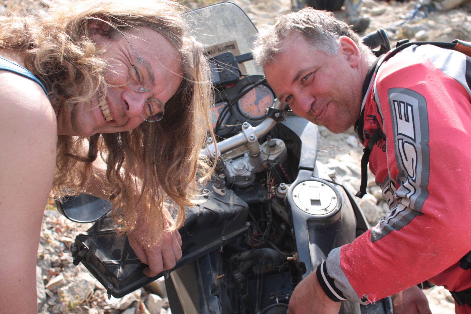 Reifen wechseln lassen, ein Team finden - viele winkten von vorn herein ab: "Du, wir fahren ganz krasse Sachen. Fahr doch lieber mit den Jungs mit den BMWs, die fahren viel Asphalt und Schotter." Bin ich dafür so weit gefahren?