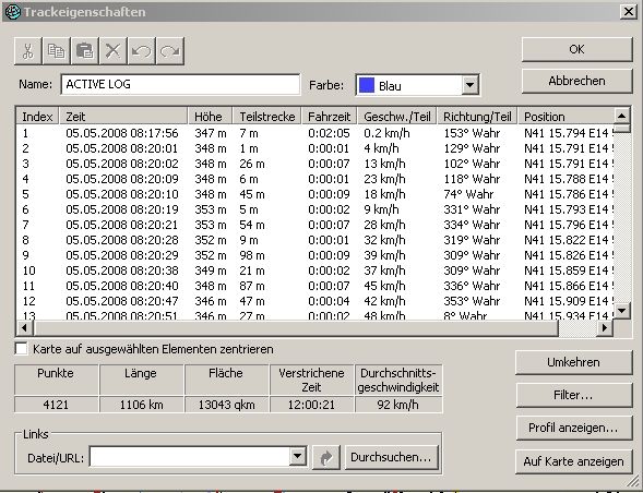 Ich mußte nur lernen, daß die edlen, teuren 276/278 Geräte nur Tracks bis 700 Trackpunkten verarbeiten können, der Rest wird einfach abgeschnitten , beim Zumo wars aber kein Prob, |