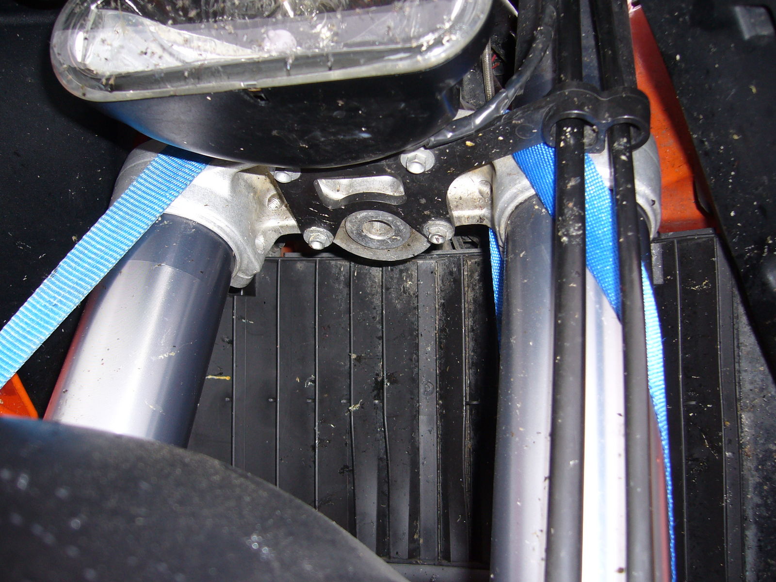 noch ne kleine Anmerkung: Während dem verzurren sollte die Gabel entlüftet werden. Vor allem bei längeren Reisen. Nach dem abladen muss natürlich wieder belüftet werden.