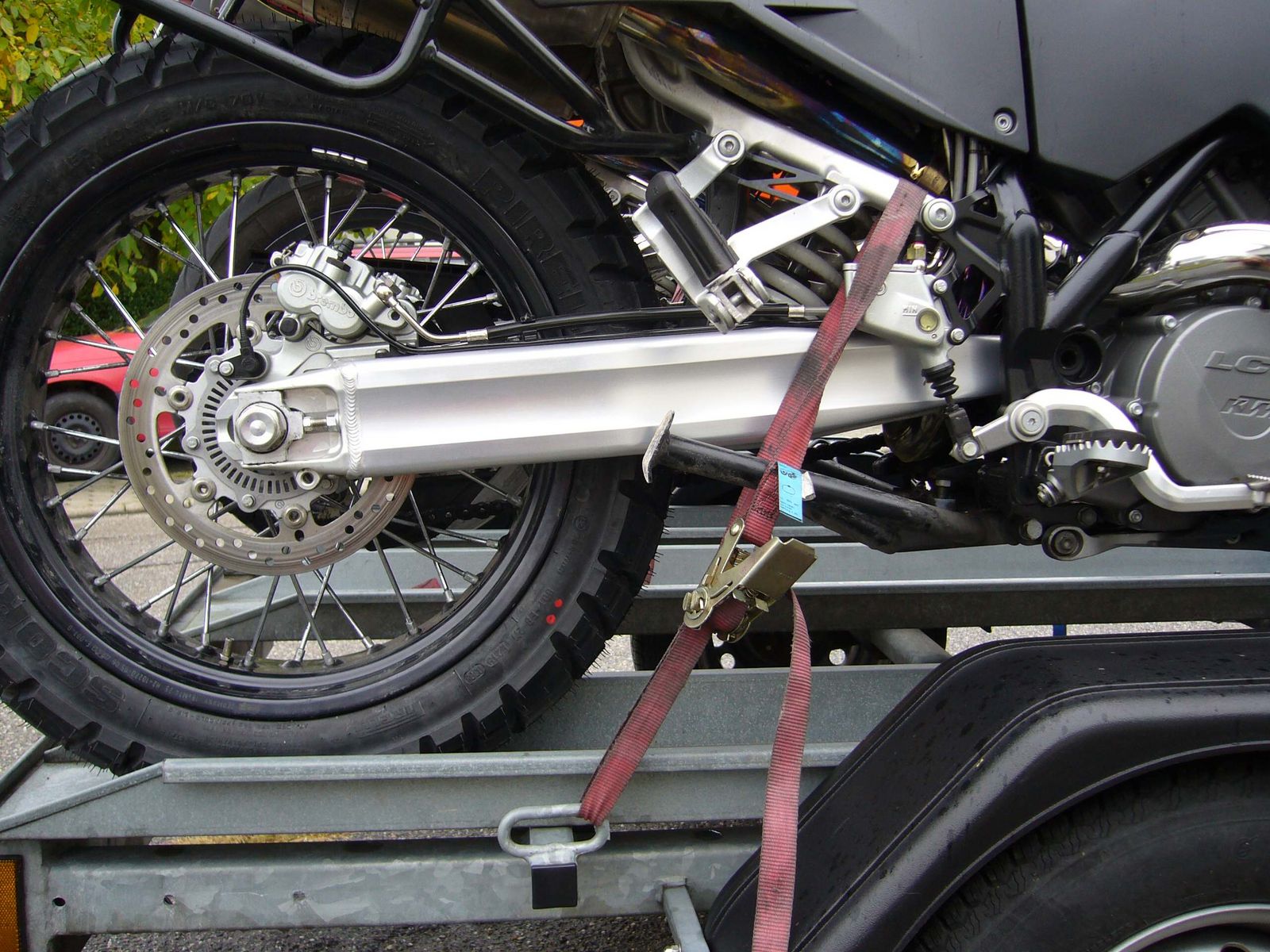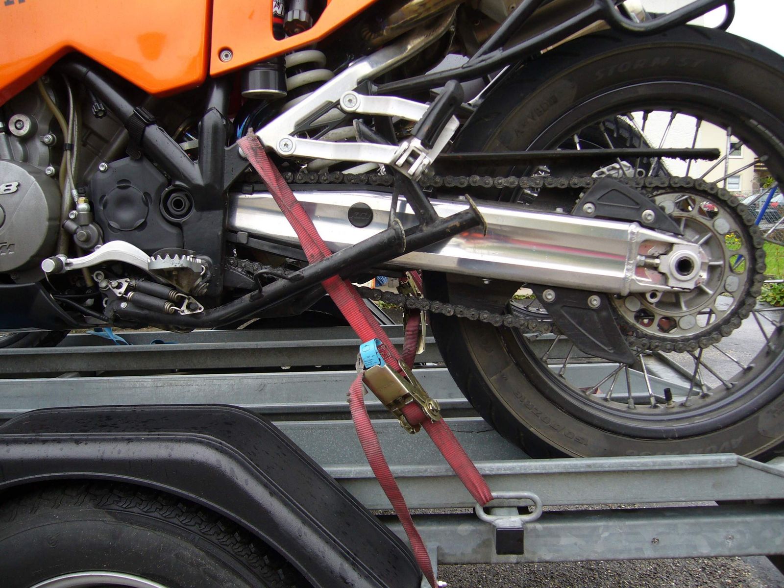 Ach Silberfisch, die halten! Was Gurte und Seile generell nicht abkönnen sind Schläge und schläge bekommen sie bei einem verzurrten Moped nun eigentlich keine mehr.