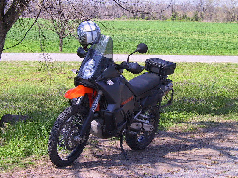 Hab mit nem Kumpel meine Maschine auf den hohen Kotflügel umgerüstet. Kein Umbaukit von TT. Gabelprotektoren von ner EXC und den Kotflügel von der SE. Bremsleitungen nach außen verlegt. ABS blieb. Nur die die Aufnahme der Bremsleitungen vorm Geweih geändert.....
