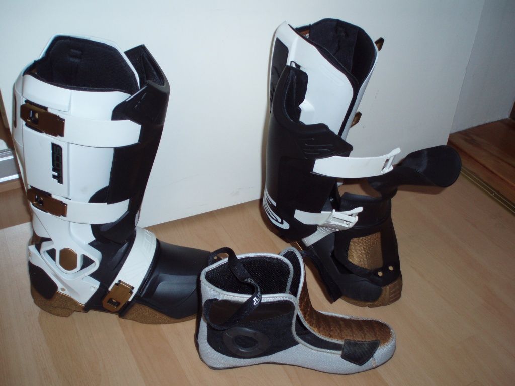 die Scott Genius MX Stiefel habe ich gerade für die neue Saison gekauft. Sie tragen sich wirklich nicht wie herkömmliche Endurostiefel, sondern wie Skistiefel. Längere Wege kann man damit nicht gut laufen. Man geht wie Frankensteins Monster in den Dingern. Sie sind mit 2 kg (Gr. 11) auch ziemlich schwer.