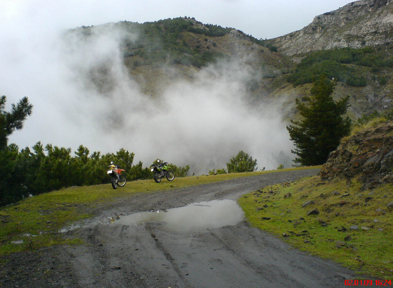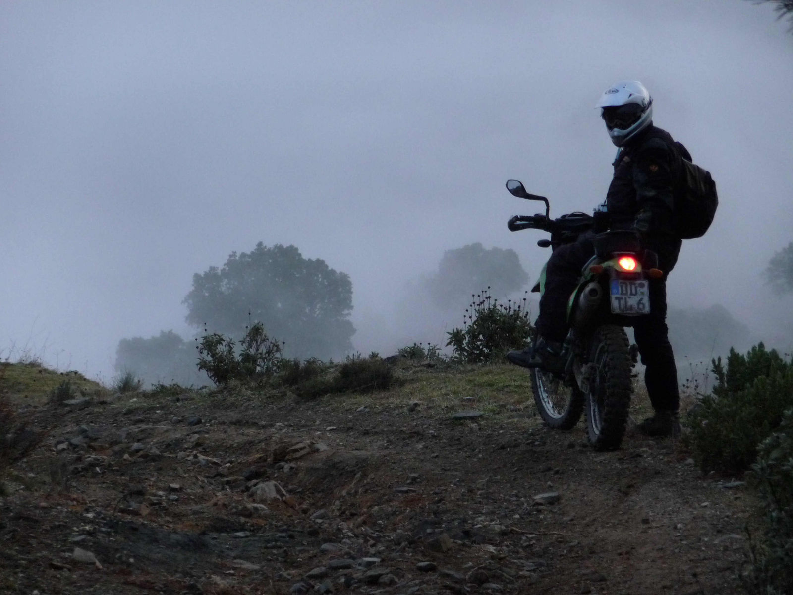 640er SM mit Enduroradsatz: eine Strassenmaschine zur Geländemaschine zu machen funktioniert nicht gut, dazu muckerte der Mikuni, meiner arbeitete aber im Vergleich bestens, Bereifung mit Enduro 3 zu strassenlastig gewählt, war aber selbst auf dem dortigen Strassen nicht dolle. Er liebäugelt mit LC8 Adv + SXC.