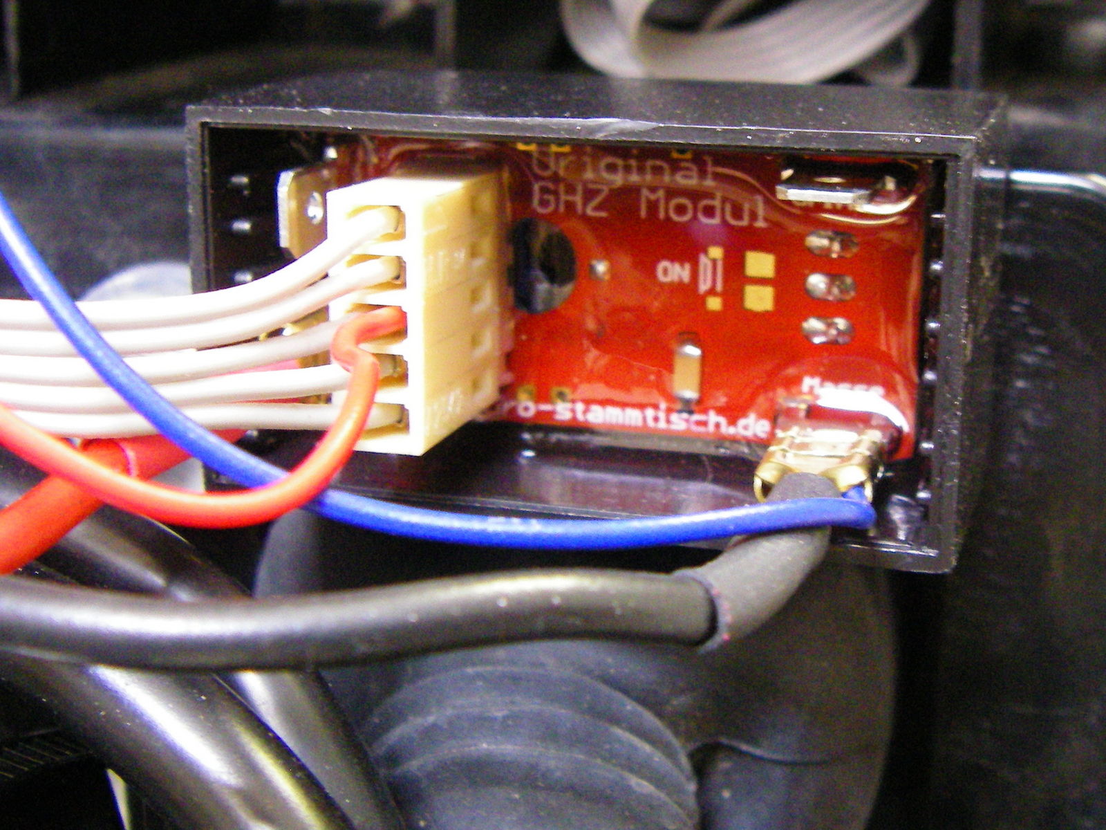 | Die beiden dünnen Kabel (bl + rt) sind für die Kontrolldiode. Die kannste auch weglassen, wenn zu kompliziert für Dich. |