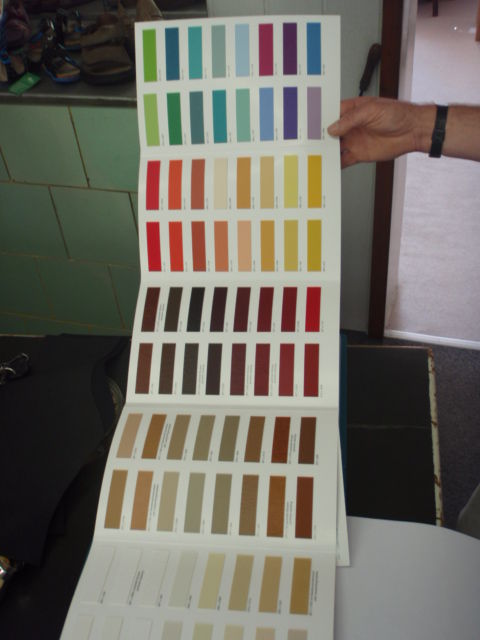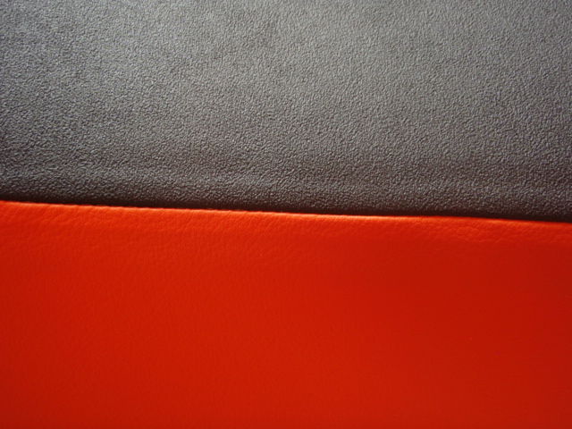 Zum Beispiel: mattschwarz / angeraut (rutschfest) für die Sitzfläche und die Flanken in orangefarbigen Kunstleder! ---> siehe Bilder