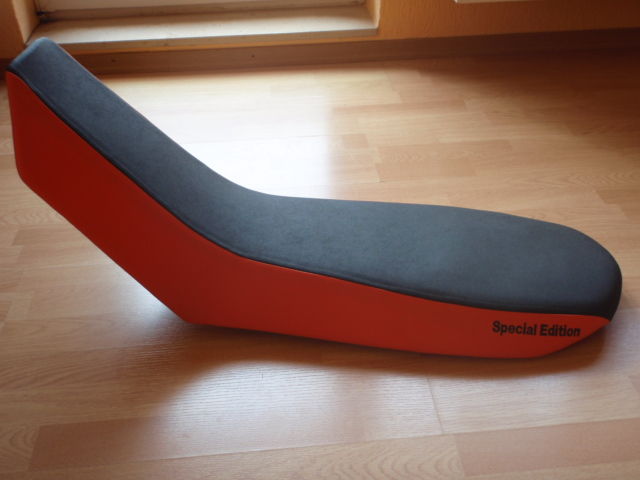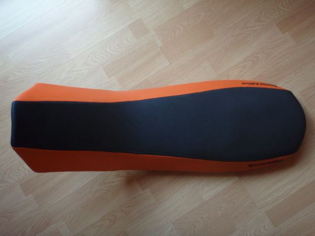 PS: Hier die Auswahl der machbaren "Häute" und Beispiele von anderen KTM-Bretter (z.B. SD-R), sowie eine Abpolsterung von 3,5 cm der SD-Sitzbank!