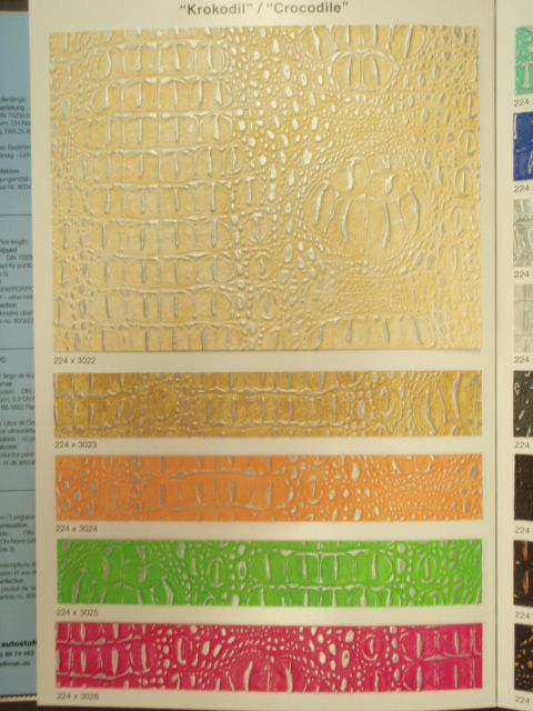 Die Sitzbezüge können in verschiedenen Farben und Strukturen gefertigt werden! Hier z.B. Schlangenlederoptik, Krokotil- und Carbon-Look! Das letzte Foto zeigt die Auswahl der verschiedenen Garnfarben für gewisse Steppnähte und Stickereien!