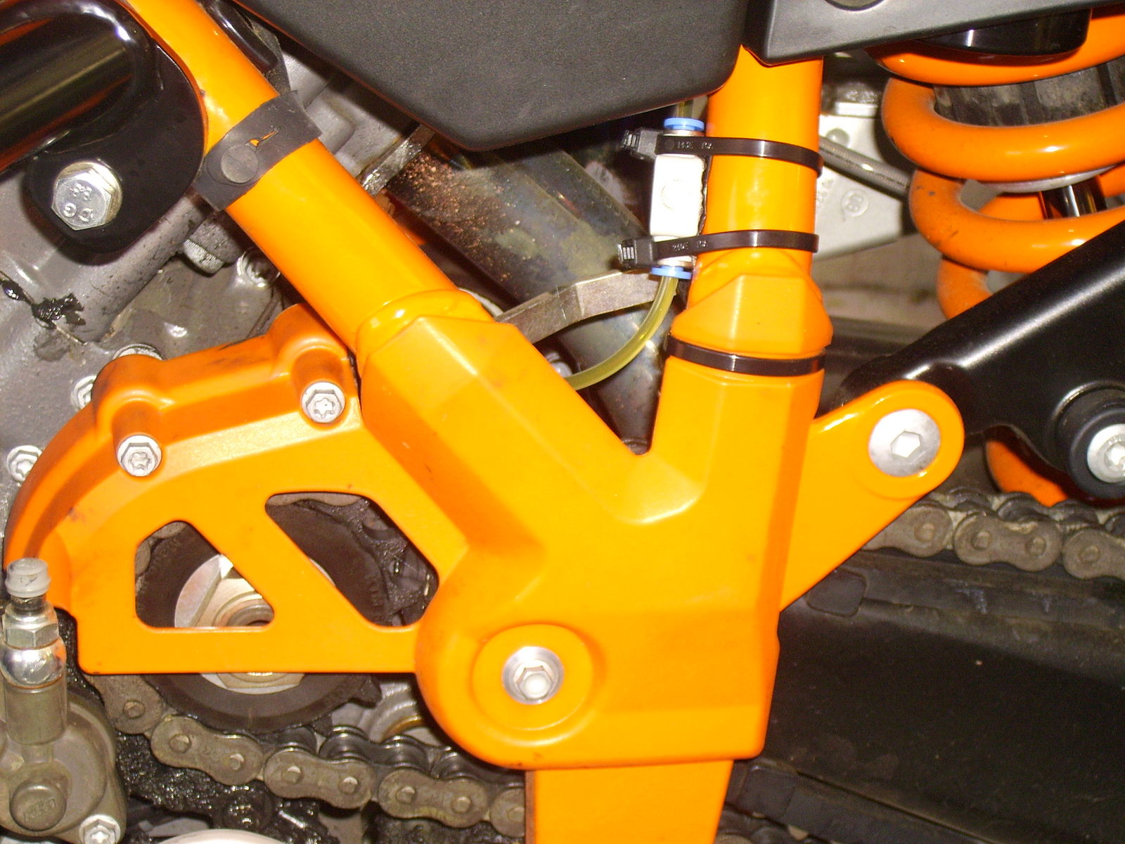 ...der Schlauch, durch den das Öl hinter dem Antriebsritzel auf die Kette träufelt...