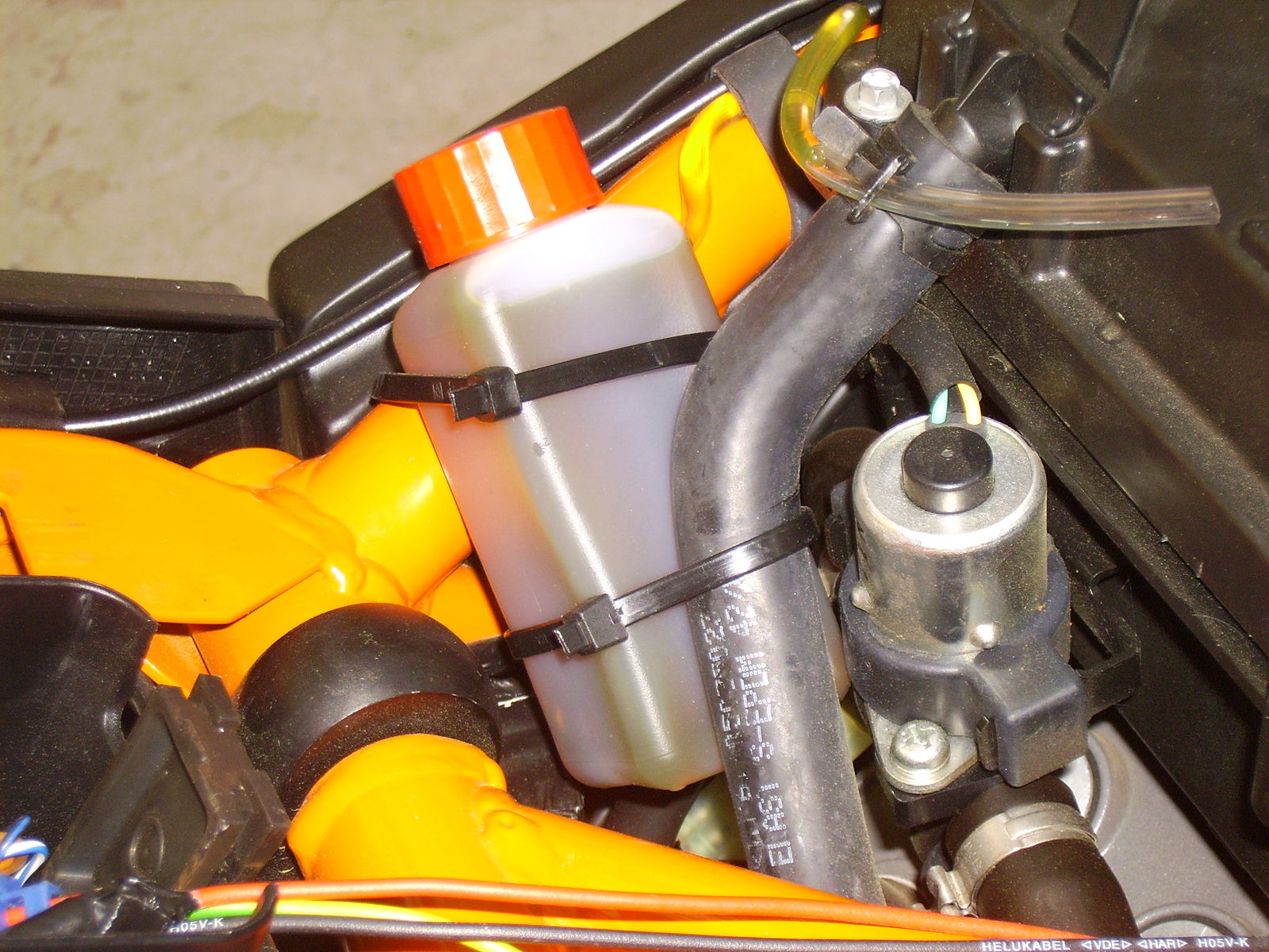 ...etwas tiefer das Magnetventil (etwas Versteckt zwischen Federbein, Rahmen und hinterem Zylinder (leider aucgh noch unscharf geknipst)...