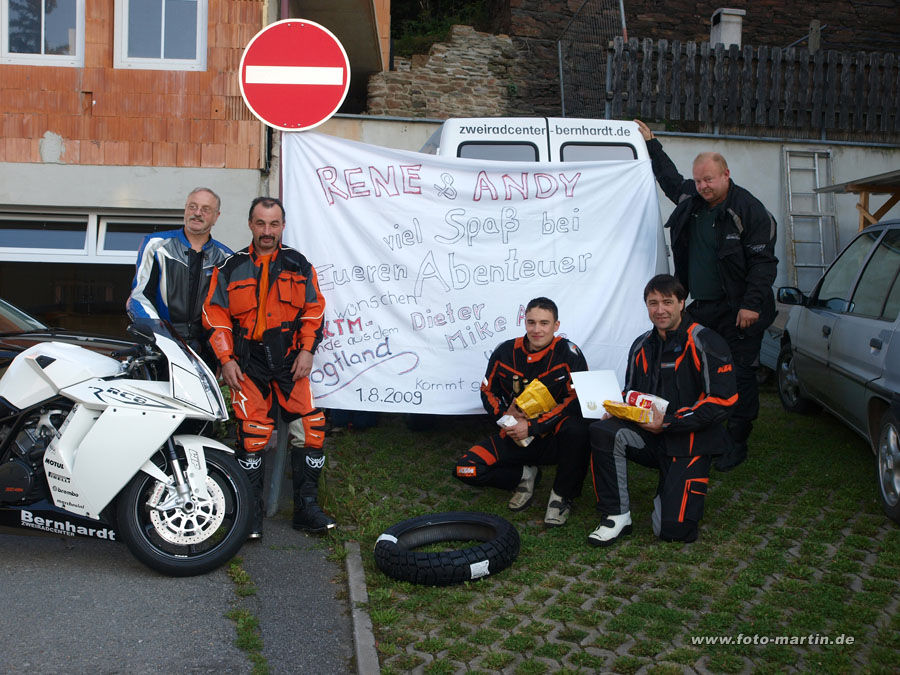 Mein Mech und sein Sohn (KTM-Bernhardt, Lößnitz) starten zu einer 2-monatigen Extremtour mit 25.000km bis nach Ulan Bator.
