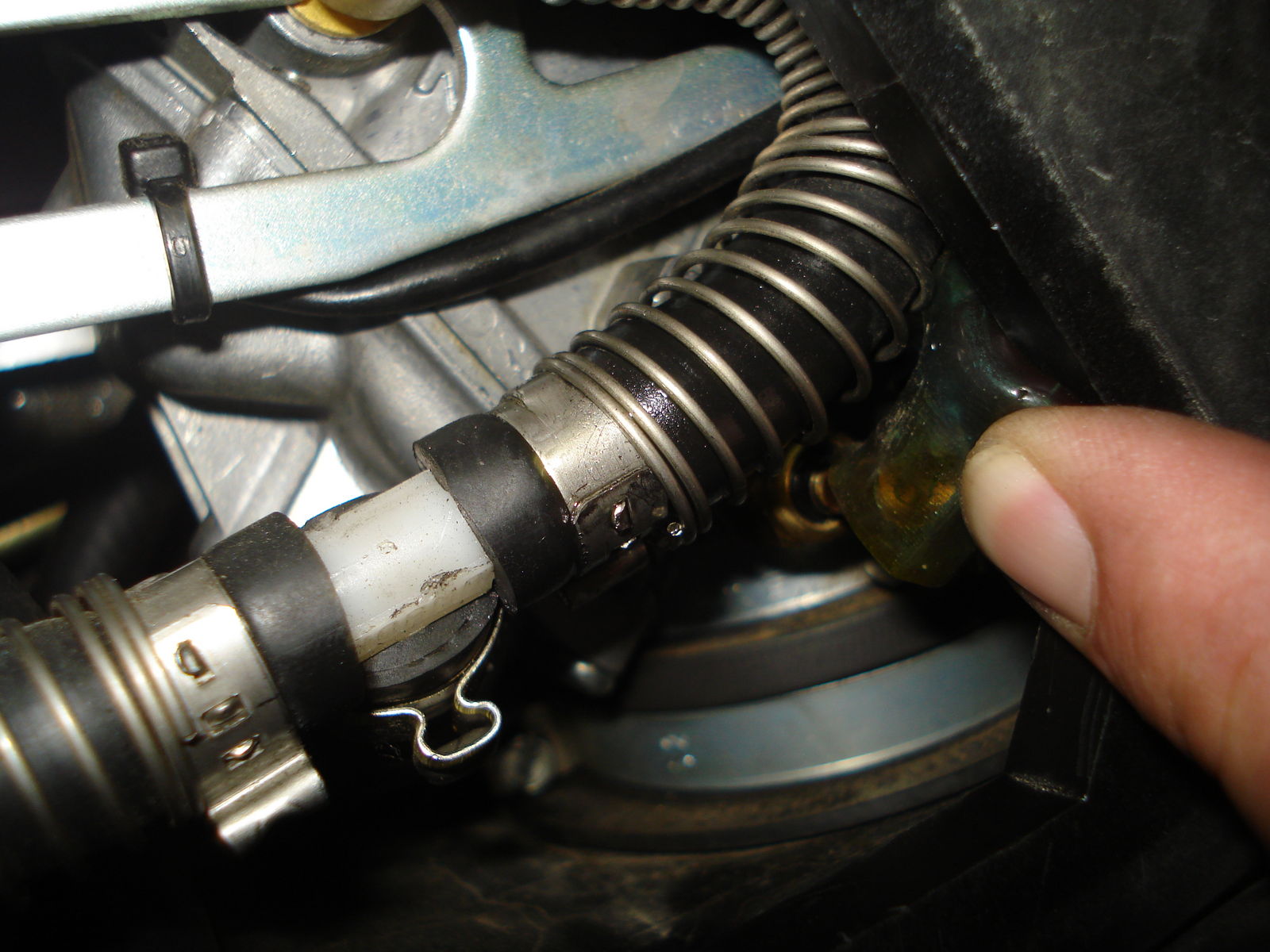 Offensichtlich drücken die Vergaserschläuche auf die Zuleitung der Vergaser-