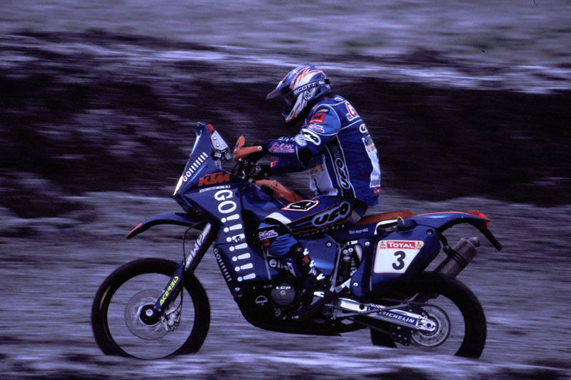 Das waren beide Hersteller-Werkteams ( 1 x Yamsel Onroad und 1 x KTM Offroad ) mit Hauptsponsor Gaulloises und die gaben das Dekor vor, so wie es heute noch bei Hauptsponsoren der Fall ist.