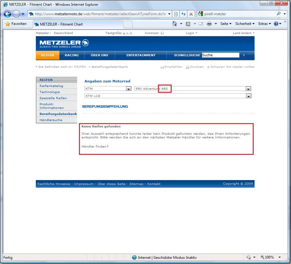 Aber Fakt ist, wenn man bei Metzeler nach Adventure MIT ABS sucht, bekommt man KEINE Ergebnisse (siehe Bild meines vorigen Beitrags) !