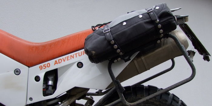 An das Krad werden die Taschen, mittels Riemen die ebenfalls mit Druckknöpfen, und nicht durch fummelige Schnallen geschlossen werden, montiert.