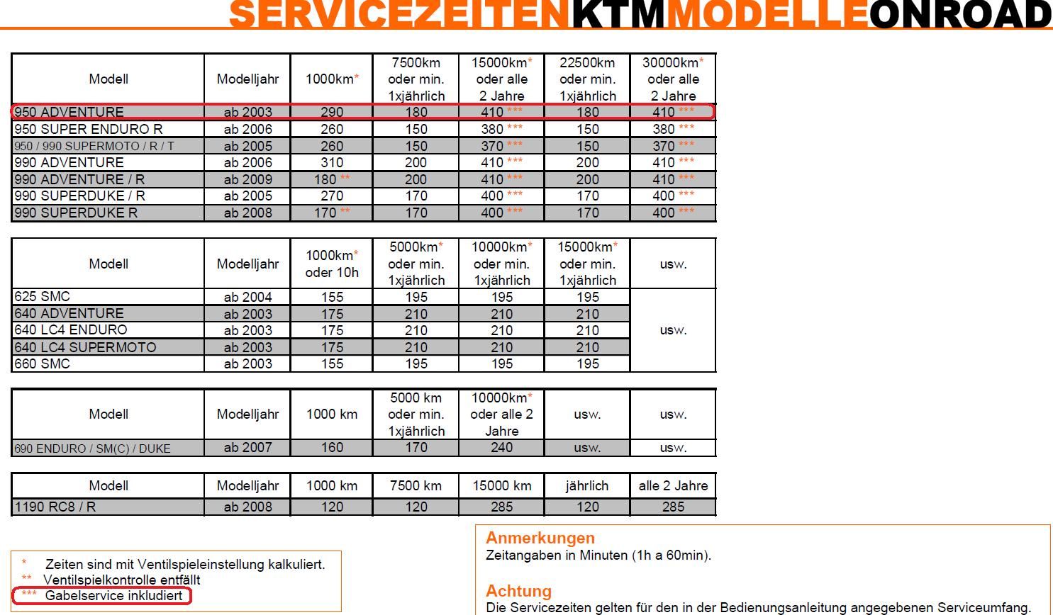 Nicht ganz ... Mit den Stundenvorgaben von KTM verhält es sich so: