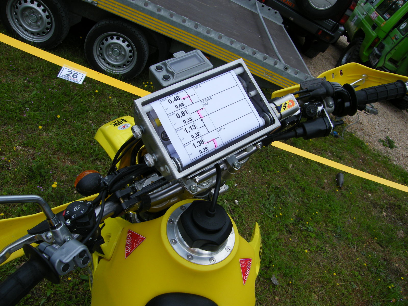 Und wenn es dann dazwischen mal richtig läuft, d.h. stehend fahren, saubere Linie hinzirkeln und die Strecke meinen zu kennen, ja Jungs, dann fühlte ich mich Coma ganz nahe (nur dass der mit 160 und nicht mit 55 km/h durchs Gelände donnert, macht aber nix). Mein Tip: gebrauchte Roadbookhalterung, Tripmaster und Fernbedienung kaufen, montieren und dann einfach anmelden, es macht nur Spaß. So, ich hoffe damit Euch Mut gemacht zu haben (auch wenn die Schulter heute noch schmerzt vom Sturz) Laughing