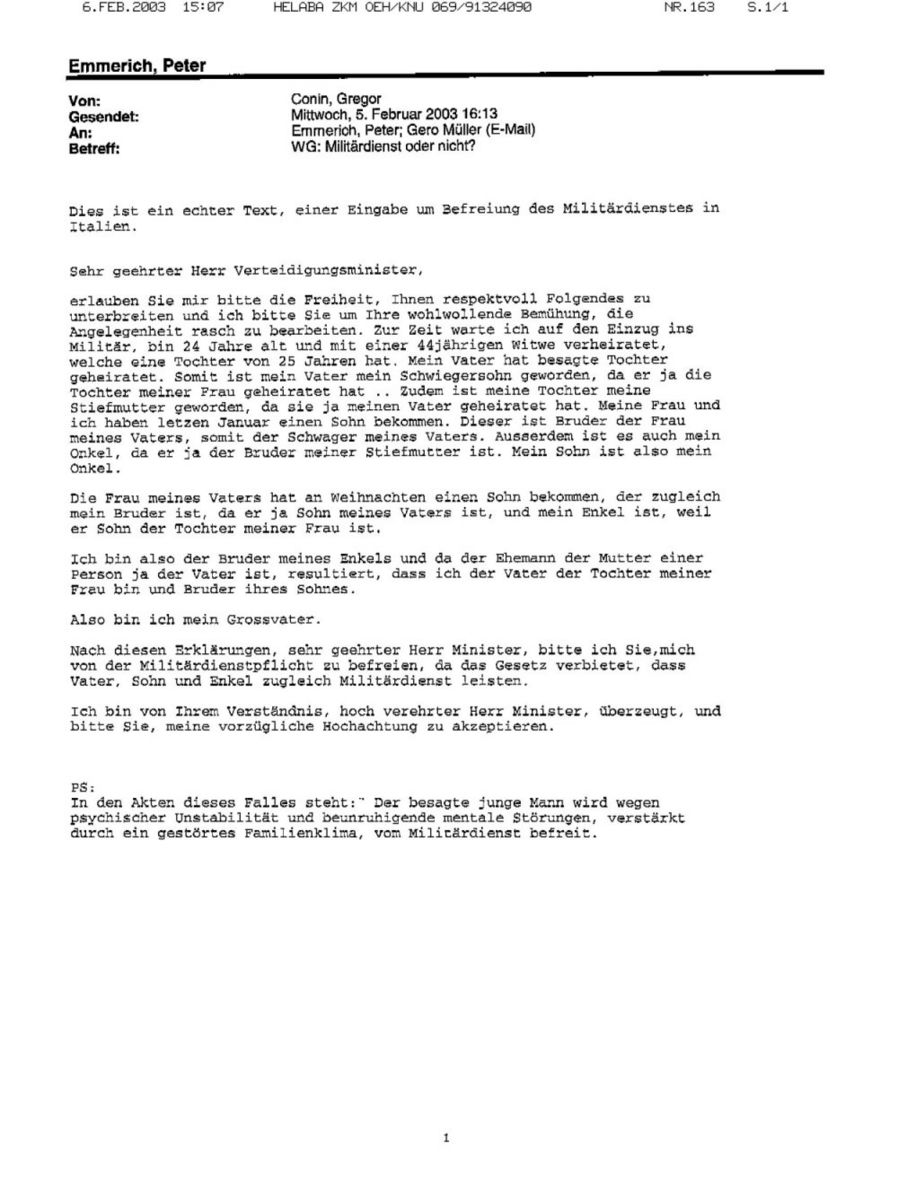 BeitragVerfasst am : Di, 24. Nov 2009, 13:18    Titel: Militärdienstverweigerung auf italienisch Antworten mit Zitat