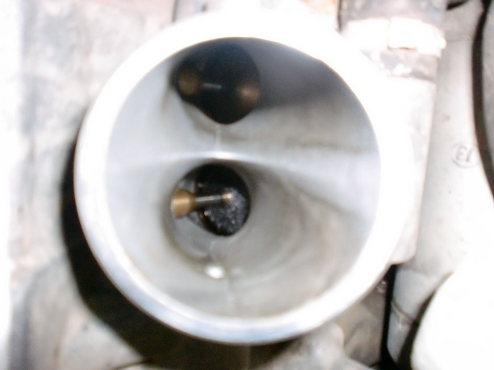 Alles abgebaut, Luftfilterkasten runter und in den Ansaugtragt des hinteren Zylinders reingeleuchtet. unsure