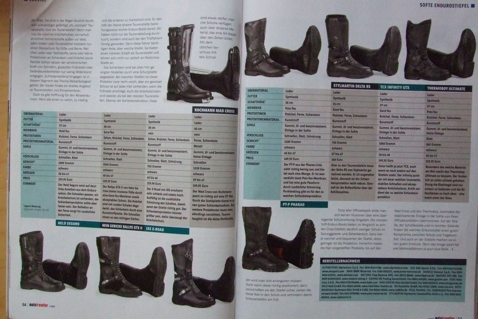 Hier ist ein interessanter Stiefeltest. Ist allerdings nichts für die ganz harten Enduristen...Ein Hebo ist auch im Test.