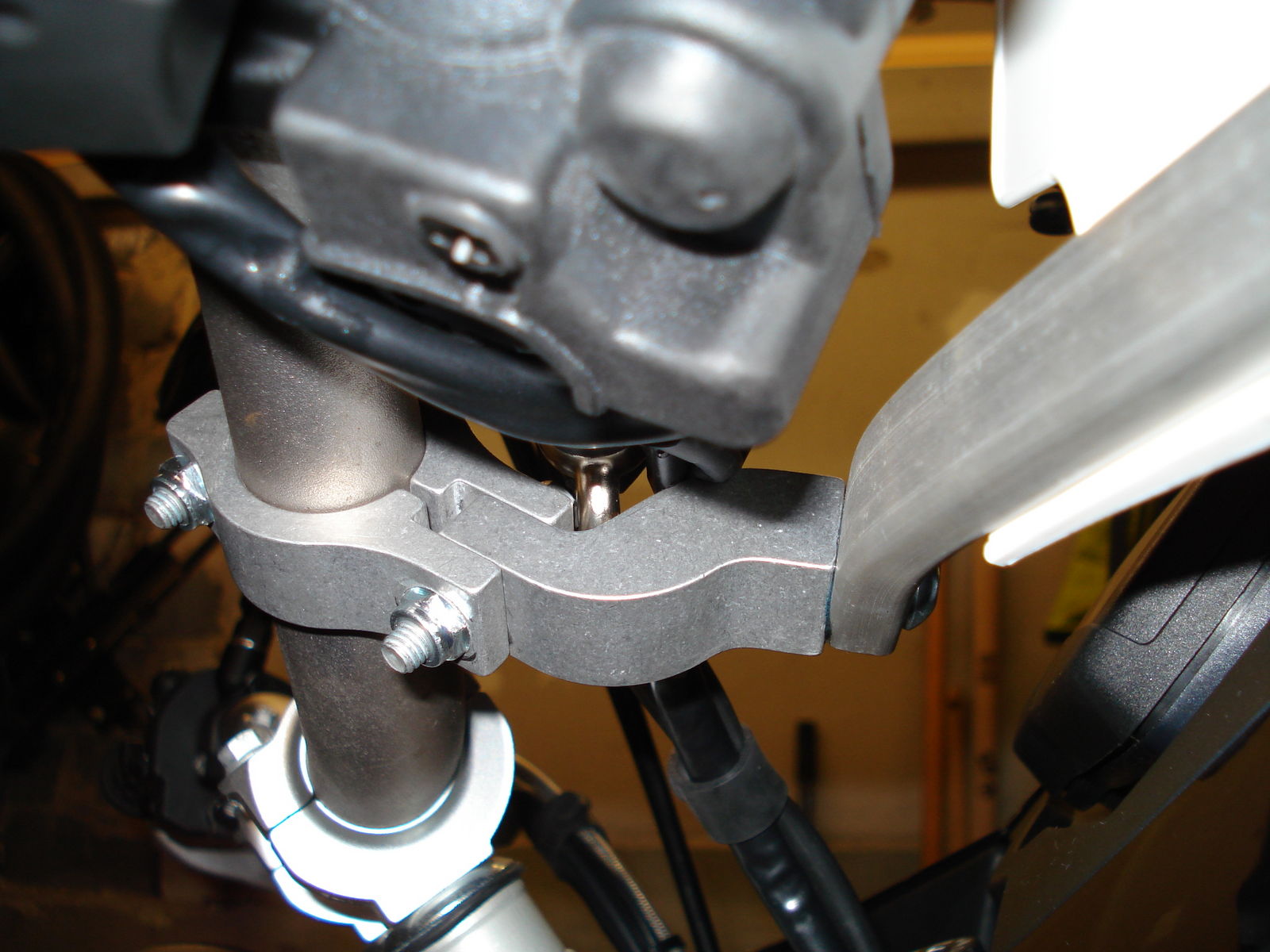 Nachteil bei der LC8 ist, das die langen Hebel von innen an die Handschalen anschlagen. Mit einer 10mm Distanzbuchse (oder ein paar Unterlegscheiben) am Lenkerende passen sie dann aber. Am Befestigungssatz (Lenkerklemmung) mußte ich ebenfalls etwas nacharbeiten, aber das ist wohl normal, denn Acerbis verwendet für alle (konischen) Lenker die gleiche Befestigung, obwohl es hier zwischen den Herstellern (Renthal, Answer, Magura,...) z.T. sehr große Unterschiede gibt. Mit etwas handwerklichen Geschick und einer passenden Feile oder Dremel ist das aber kein Problem.
