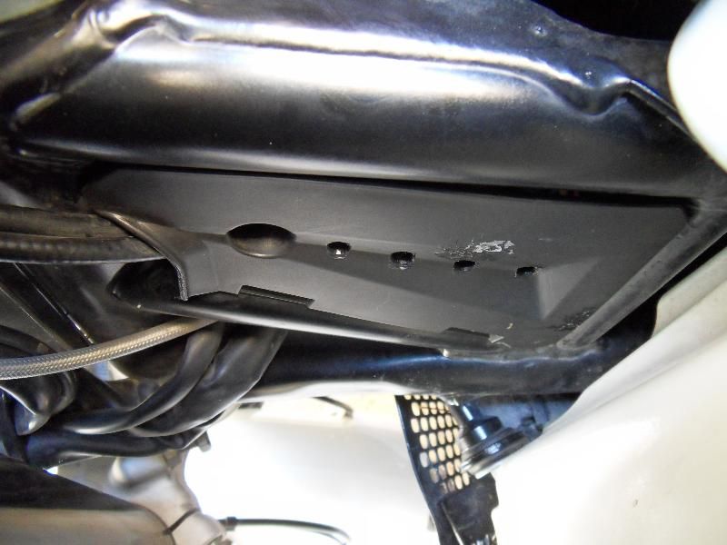 Habe jeweils 4 Löcher (6mm) in die 2 Plastik-Abdeckungen am Rahmendreieck gebohrt (wollte die Abdeckungen nicht ganz weglassen, da ich oft sehr staubig unterwegs bin). Auf der Innenseite der Abdeckungen, über die Bohrungen habe ich feinmaschiges Eisengeflecht angepaßt und mit Sekundenkleber fixiert (damit keine kleineren Teile Richtung Lufi durchgezogen werden).