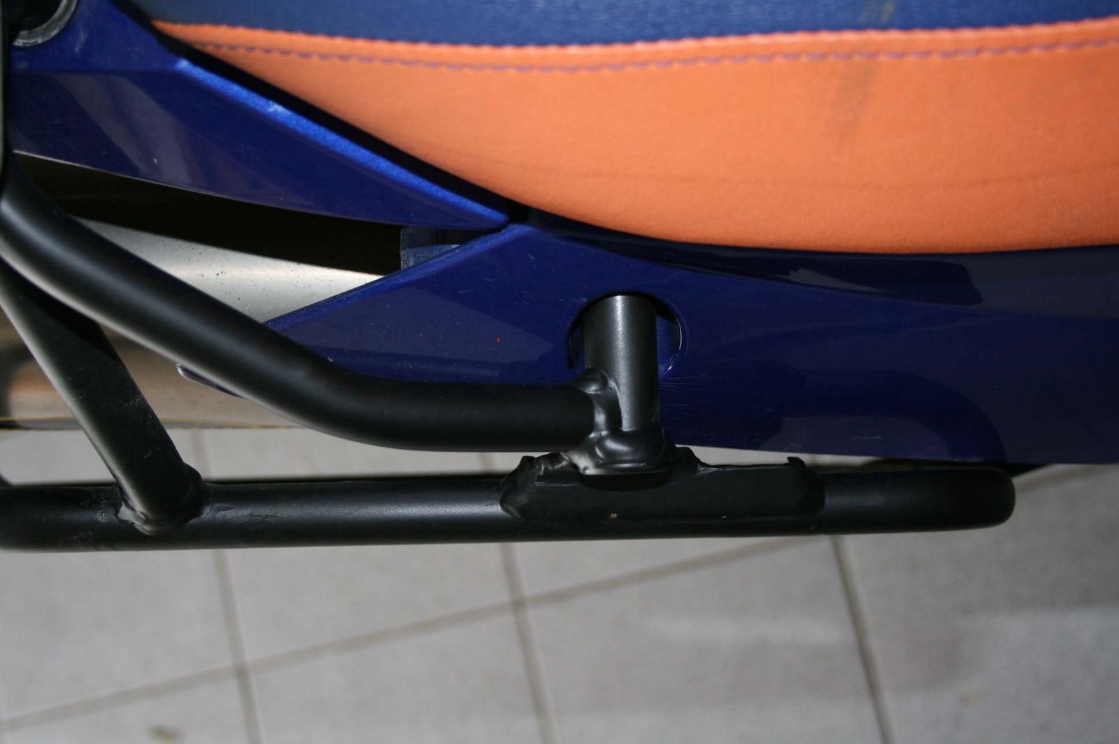 Wenn Du an den Gobis nichts machen kanst, dann schweiß doch die Träger um, so wie´s der Pichler Joe gemacht hat. Hast´die Bilder mal angeschaut? Das einzig blöde dabei ist, daß man die Verkleidung hinten etwas einschneiden muß, um optimale Ausnutzung zu erzielen. Ach ja, hast Du Akras dran? Das konnte man auf Deinen Bilder nicht sehen - sonst hat´s natürlich keinen Zweck.