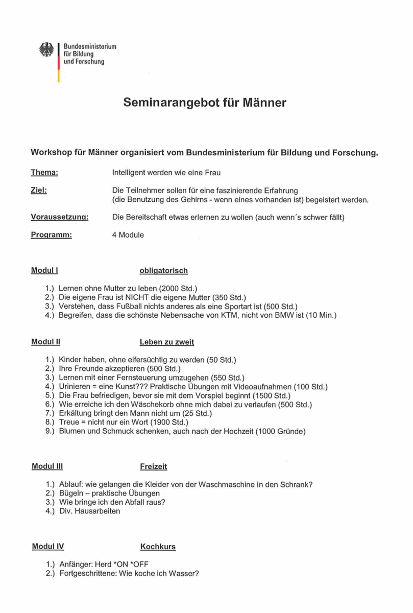 Hier, ein neues Seminarangebot in 4 Modulen für Männer Smile