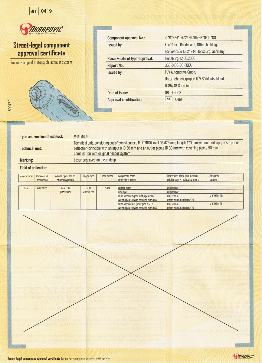 Die E Nummer ist bei der SM anders. Achte drauf das da die 0419 drauf steht. Sonnst darfst Du ihn nicht fahren.