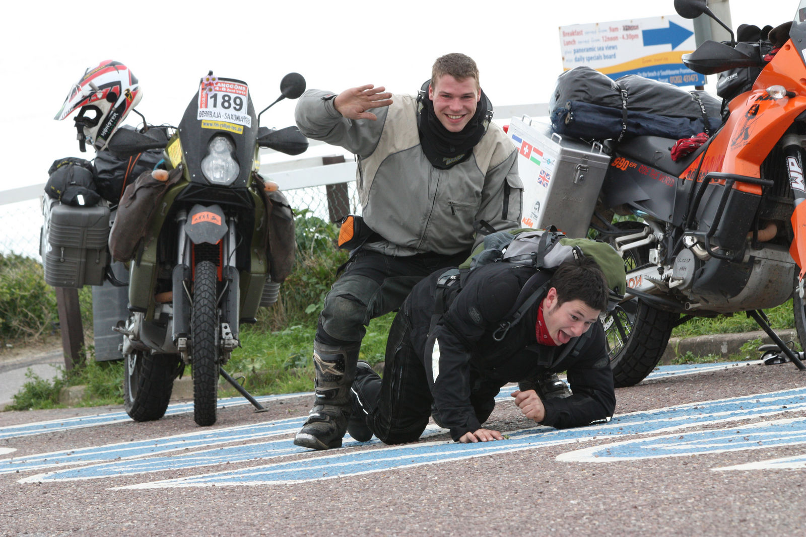 Da ich dieses Jahr den Atzimuth beim Forumsrennen (danke an die WWler nochmal!) kennengelernt habe und wir gleich auf ein und dergleichen niveaulosen Wellenlänge lagen, habe ich ihn kurzerhand auch gefragt ob er Bock hat. Seine Antwort „Denke mal es wird zu 90 % Strasse gefahren da wären doch die TKC ausreichend.“ „Der Urlaub ist eingetragen“