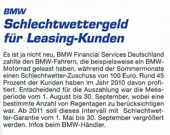 Fehlt noch eine Versicherung für Reuma Schäden verursacht durch BMW Anzüge . . .