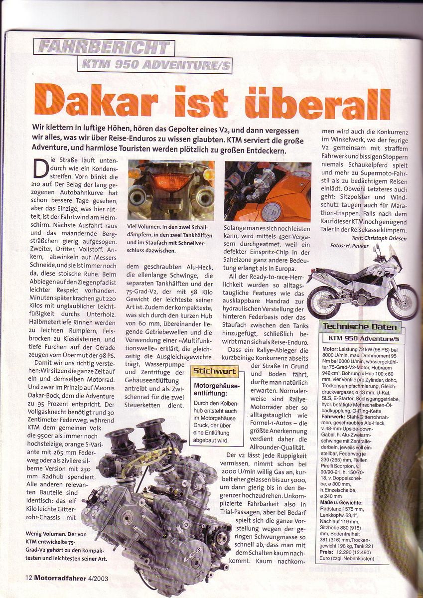 Da kann ich auch noch was beisteuern, unten ein Bericht zur Rally 950 und hier eine Webseite, die ganz interessant ist: