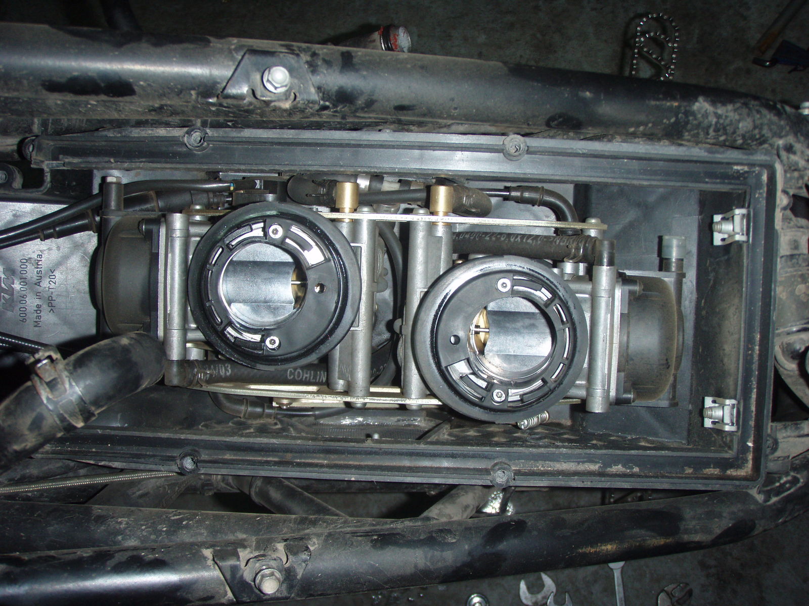 die beiden Entlueftungsschlaeuche gehen nach unten aus dem Lufikasten raus und duerfen nicht geknickt sein. Die EPC Schlaeuche fest drauf, bzw die Stopfen wenn kein EPC?
