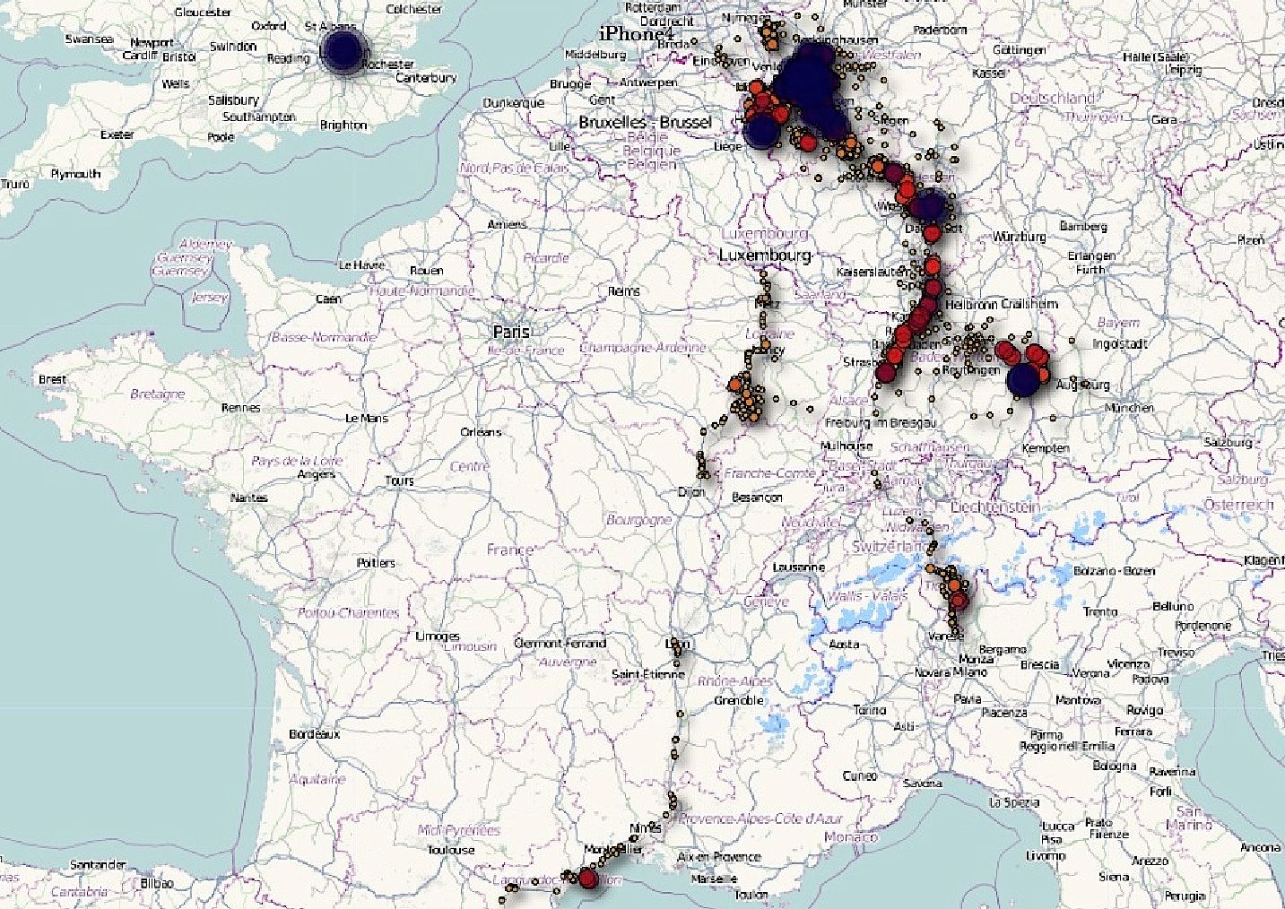 Was mich wundert,ist dass das Navigon Select auch in Frankreich arbeitet.Nach den Infos im AppStore sollte nur das Kartenmatrial für D,Ch,Ö und Licht. Aufgespielt sein.