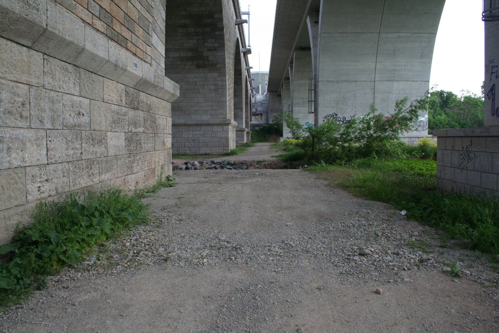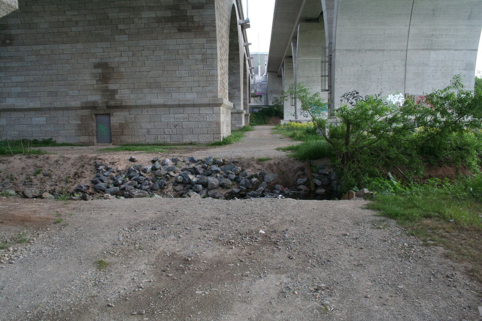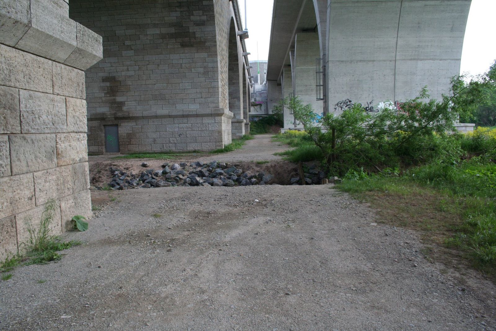 zur "geschichte" des weges. er muss wohl mal als "baustraße" genutzt worden sein. er war bitumiert und über den bach ging vor ein paar monaten auch eine ordentliche feste brücke. es wurde also zurück gebaut.