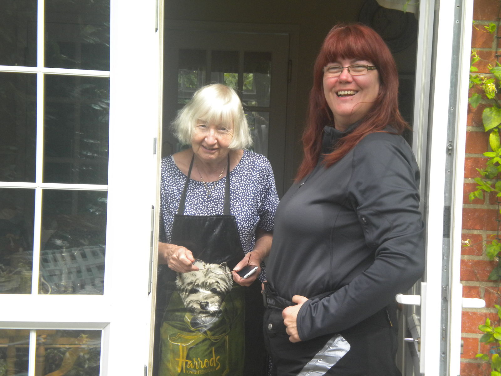 Elaine,ein Frau wie man sich seine Oma wünscht, zwei supersüße Hündchen udn alles furchtbar englisch wub wub wub Silberne Suppenterrine, Deckchen,Blüten auf den Tischsets,eine Wärmehaube auf der Teekanne,Möbel wunderschön und alles mit Rüschen,ein kleiner Garten mit schmiedeeisenen Möbeln, Romantik pur,ich fands superklasse wub wub wub