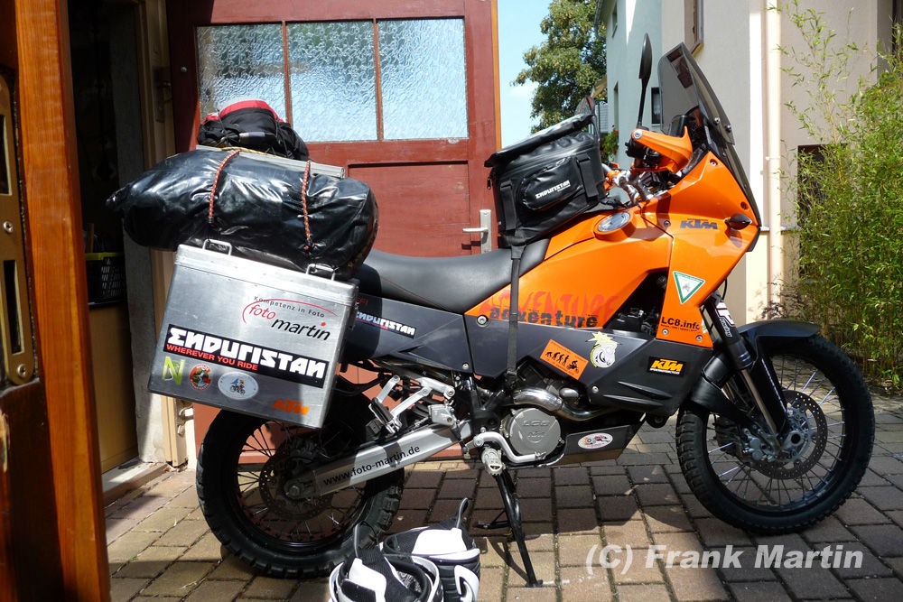 An dem Tag das erste kleine Problem: Wasserflasche, die immer auf dem linken Koffer mit Spanngummi befestigt ist irgendwo verloren - das passierte dann nochmal - besser festzurren !!!