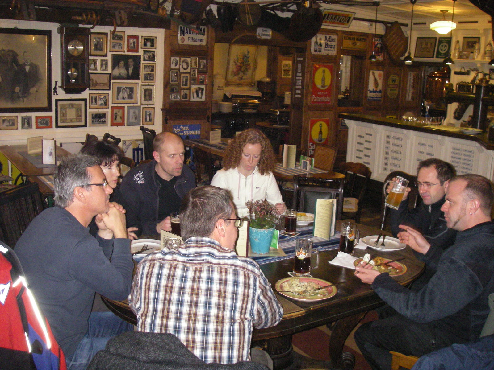 So kamen wir mit dem Erik noch besser ins Gespräch und konnten im Anschluß bei lecker Essen und mehreren Bierchen noch weiter andächtig seinen Berichten lauschen.