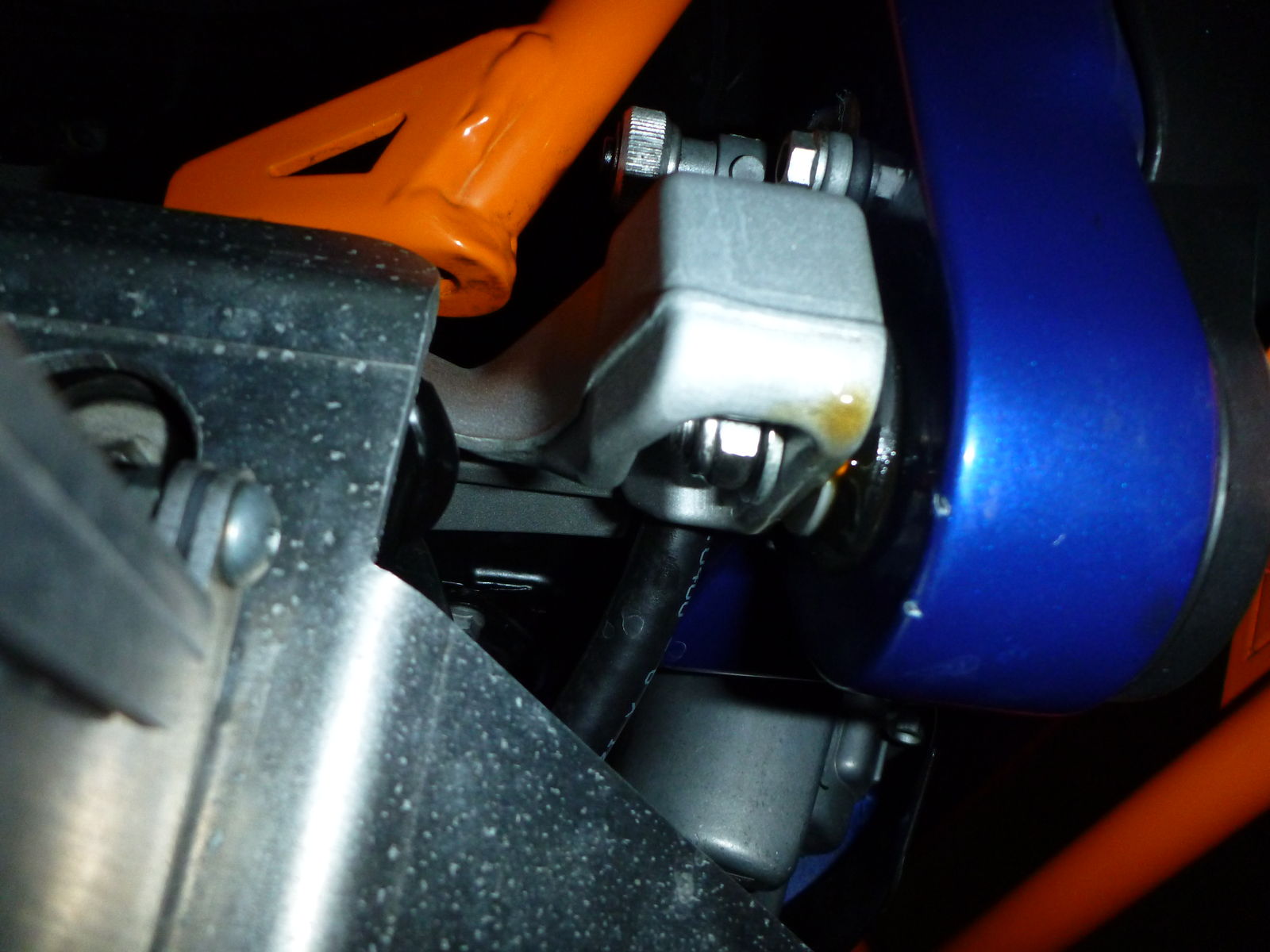 Danach ca. 200 km gefahren und dann wegen viel Arbeit 4 Tage das Bike am Seitenständer in der Garage abgestellt. PLÖTZLICH EIN ÖLVERLUST, AM BODEN EIN KLEINER ÖLFLECK!!!