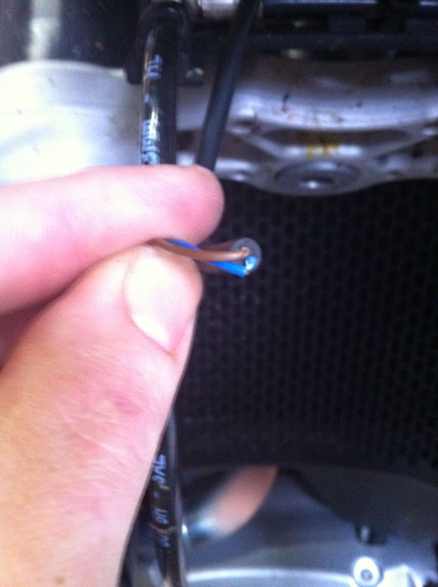 Das Kabel des Temperatursensors, welcher unterhalb der Gabelbrücke sitzt und mit der Bremsleitung via Kabelbinder befestigt ist, hat sich am Vorbau aufgescheuert. Das Kabel war genau an der Stelle verlegt wo kein Kantenschutz ist.
