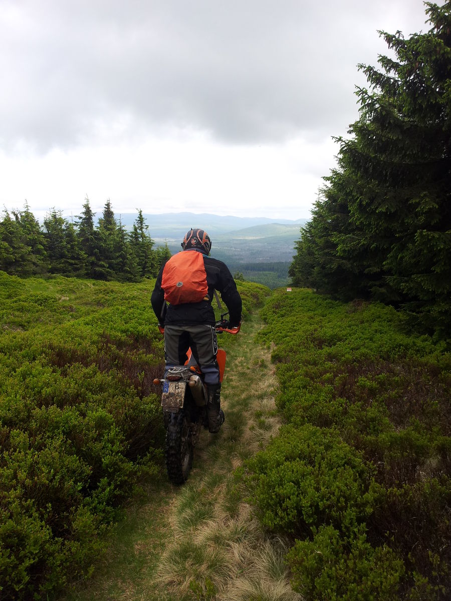 Weiter durch einmilitärgebiet mit endlosen singletrails und den berg bei jablonec hoch.