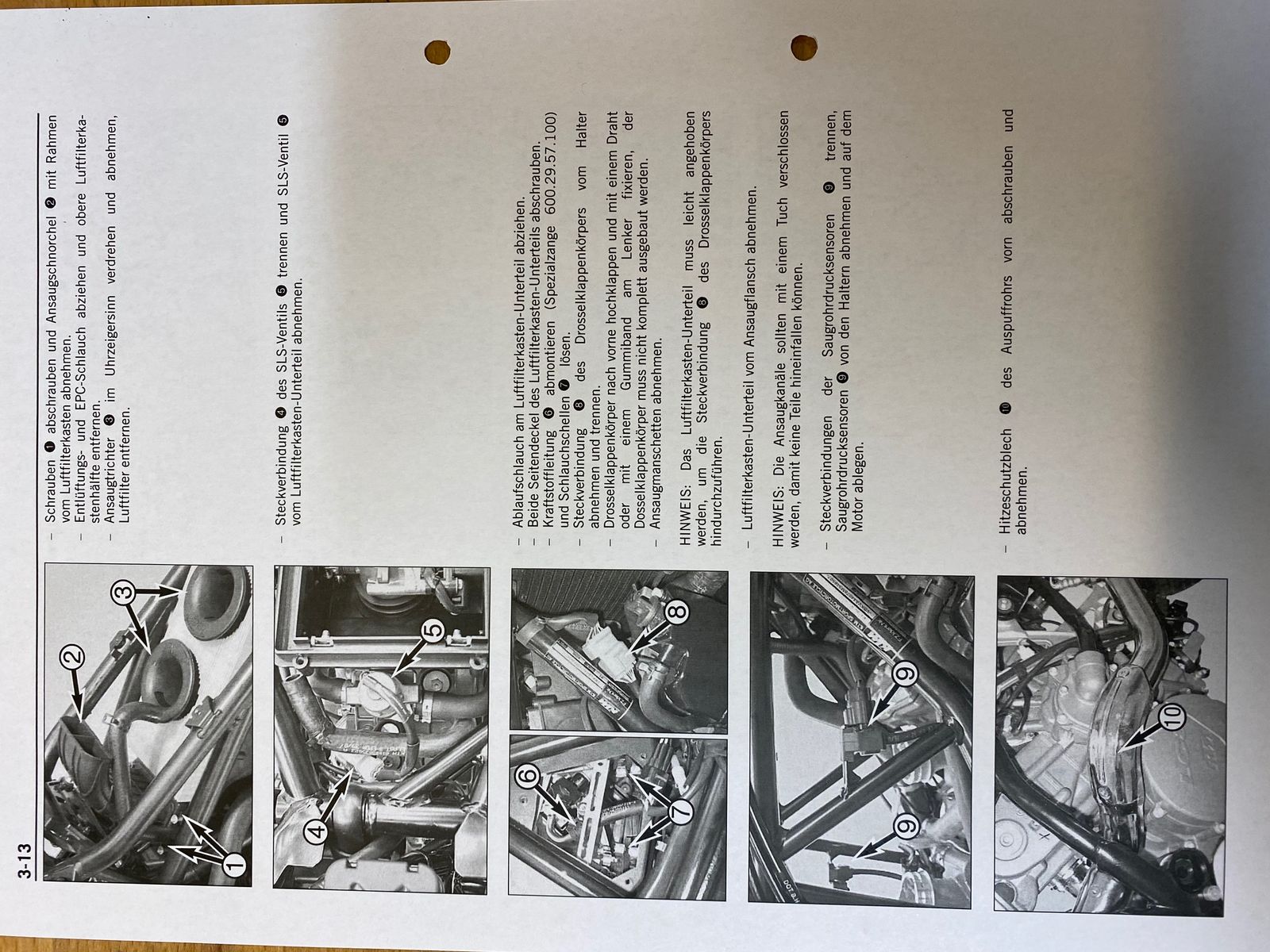 Luftfilter samt Trompeten raus. Die 3-Eckigen, seitlichen Abdeckungen weg, um die EFI aus dem Einlaus-Rohr zu lösen. Kann jetzt die EFI abziehen, aber die Gaskabelzüge sind im Weg.