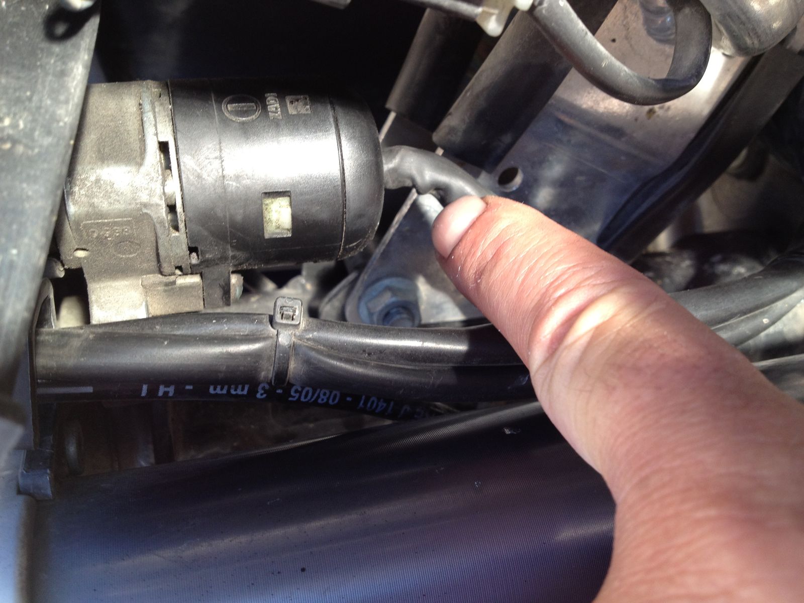 Wie auf den Bildern erkennbar liegt ein Wackelkontakt im Kabelbäumchen vom Zündschloss ausgehend. Da wo der Finger drauf zeigt kann man es etwas knicken, dann geht Licht an oder aus ect. Also bis zur Steckverbindung freigelegt und Lenker in verschiedene Posi gedreht. Erfolg gleich 0.Mal geht es, mal nicht.