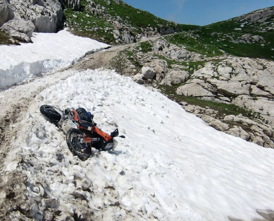 Da führt ja nicht einmal eine Spur zum Mopped. Gesprungen?
