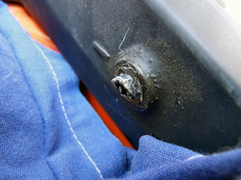 Bei dem Wechsel des Benzinstandsanzeigers, bei dem ich den Tank abbauen mußte, hatte ich mich dusselig angestellt Rolling Eyes und vergessen den Schlauch/ Schelle an dem Verbindungs-Schlauch zu lösen, der beide Tanks oben verbindet. Dabei brach das Plastik-Anschluß-Stück am rechten Tank so ab, das nur noch ein kleiner Rest aus dem Tank sah ohmy .