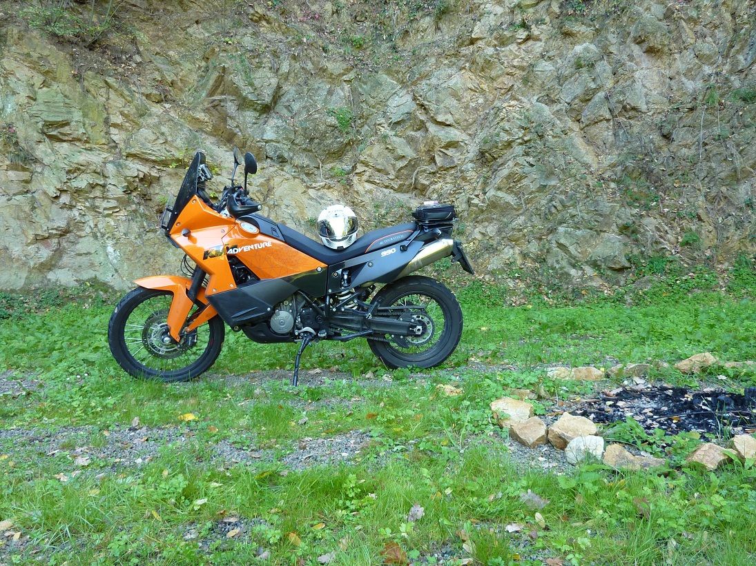 An einem alten Steinbruch hab ich mich auch etwas ausgetobt und mich beim [300] Hinknien vor der Göttlichen, um diese wieder und immer wieder abzulichten, in ein Stück vergammelten Kürbis gekniet - matsch! Protektorentest bestanden. k.A. wie die zahlreichen Kürbisstücke dort hingekommen sind, verstreut rund um das Lagerfeuer am Foto, vermutlich hat es dort eine Vegatariergrillerei stattgefunden – abartig (Abschweifung die 2.e !).