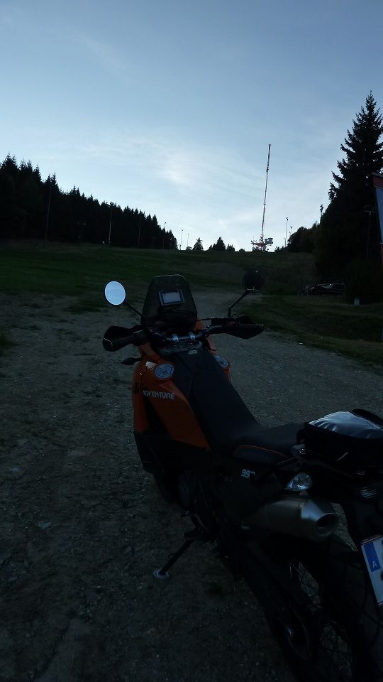 Schon beim Wegfahren zuhause wusste ich - heute ist ein magischer Tag, ein wichtiger Tag, dend der km-Zähler stand bei Neuntausend-Siebenhundert-irgendwas. Doch lieblich Herbstsonne, Blätter in allen Farbnuancen (stimmt nit: kane weissn gsegn, a kani schworzen! Ausdruckfehler!) rückten die Aufmerksamkeit vollends auf sich, sodass mir das Zehn-Tausender-Jubiläum knapp [400] entging. 3 km weiter und im selbigen Augenblick vollends ausrastend, bemerkte ich diesen Umstand und warf den Anker, womit gesagt sei, dass ich erstmals das Kantn-ABS vorne regeln spürte, auch mal eine Erfahrung - somit könnte man dem Augenblick durchaus auch etwas positiv abgewinnen - dennoch das Jubiläum verpasst! oiso drauf gsch... auf so a ABS-Erfoahrung! (Abschweifung die 3.e !).