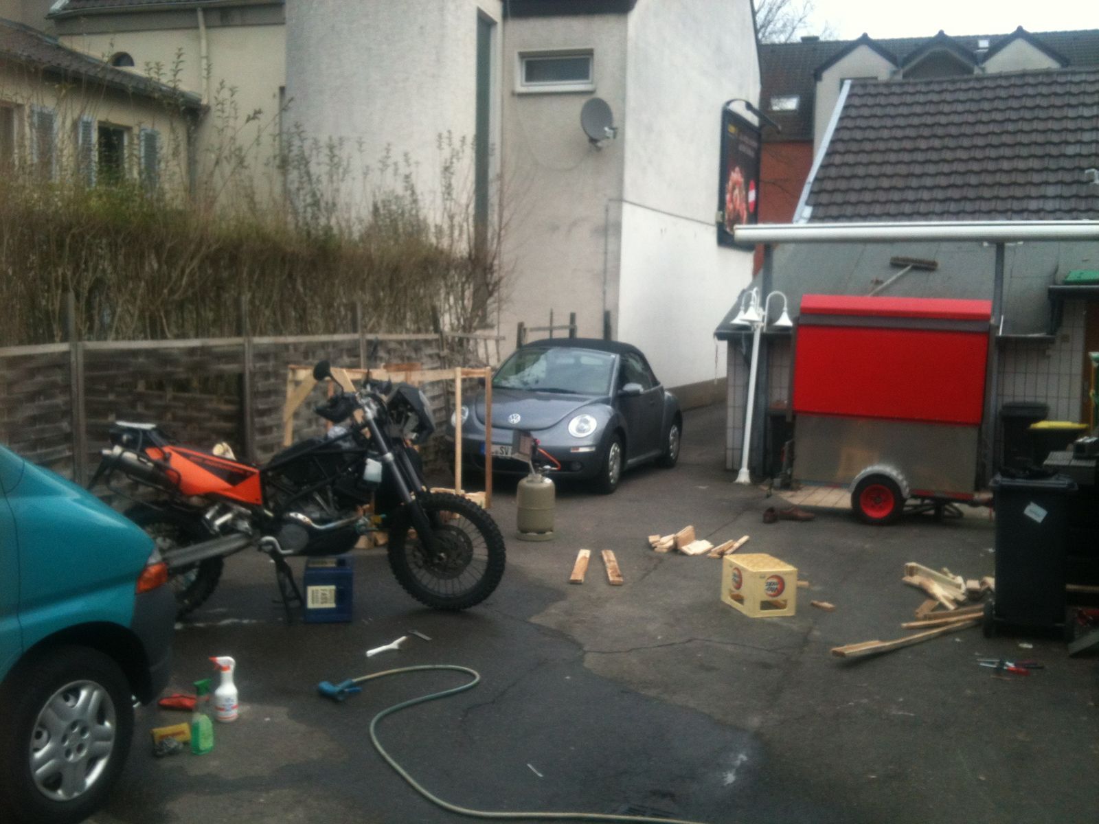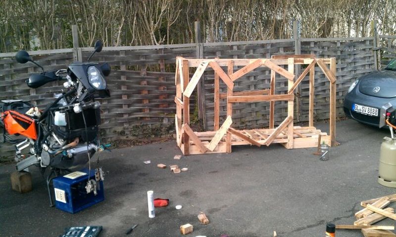 die Kiste ist gebaut,alle Vorbereitungen bezüglich des Motorrades getroffen und die Mühle wurde gestern abgeholt.