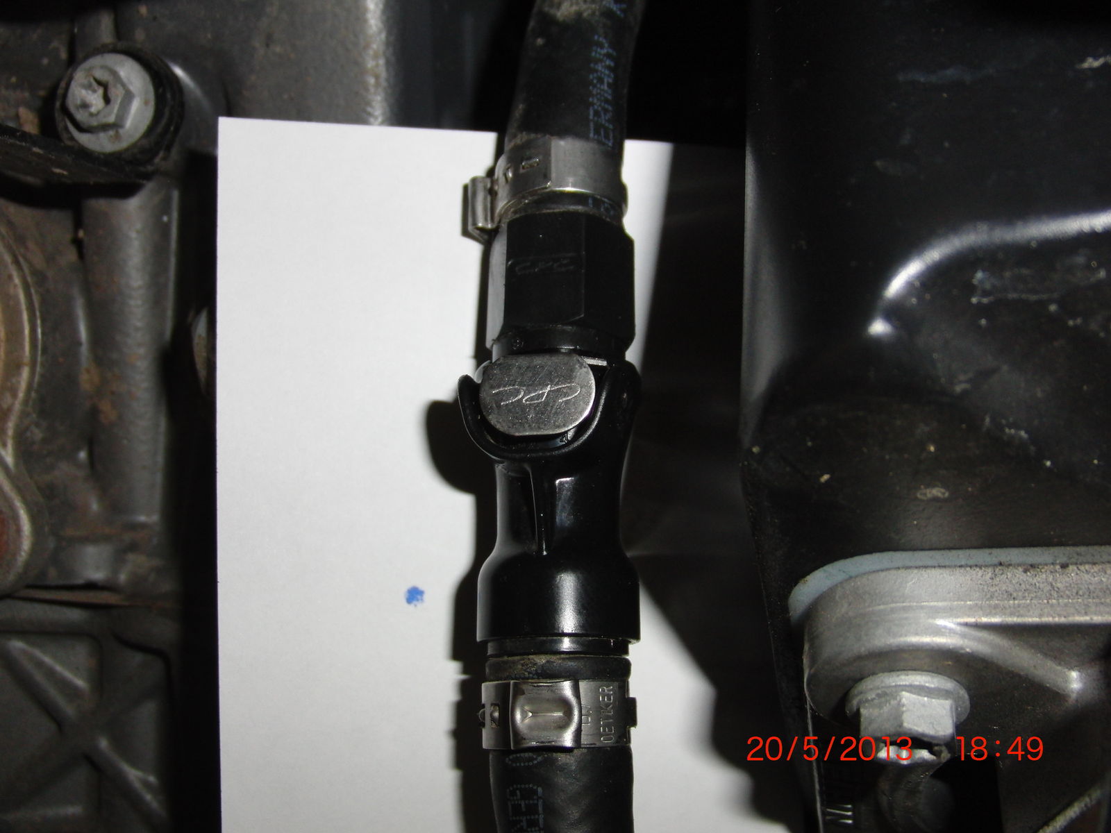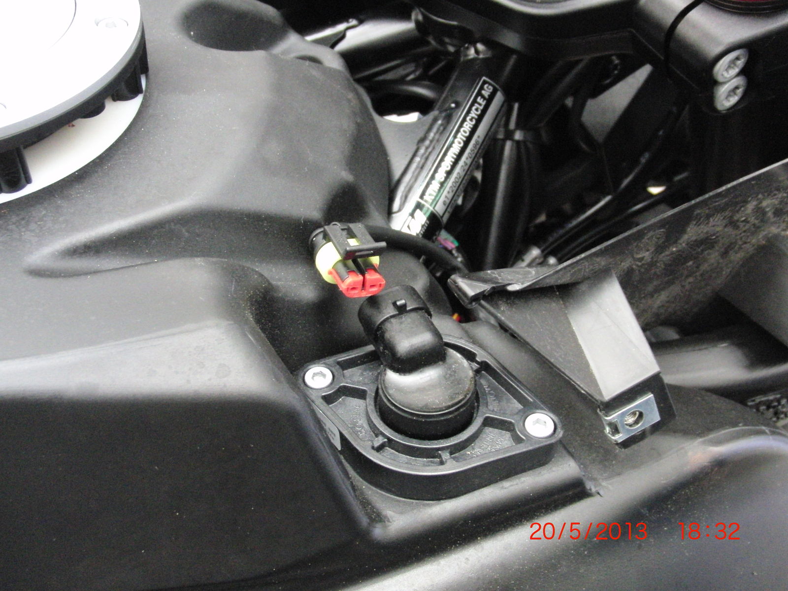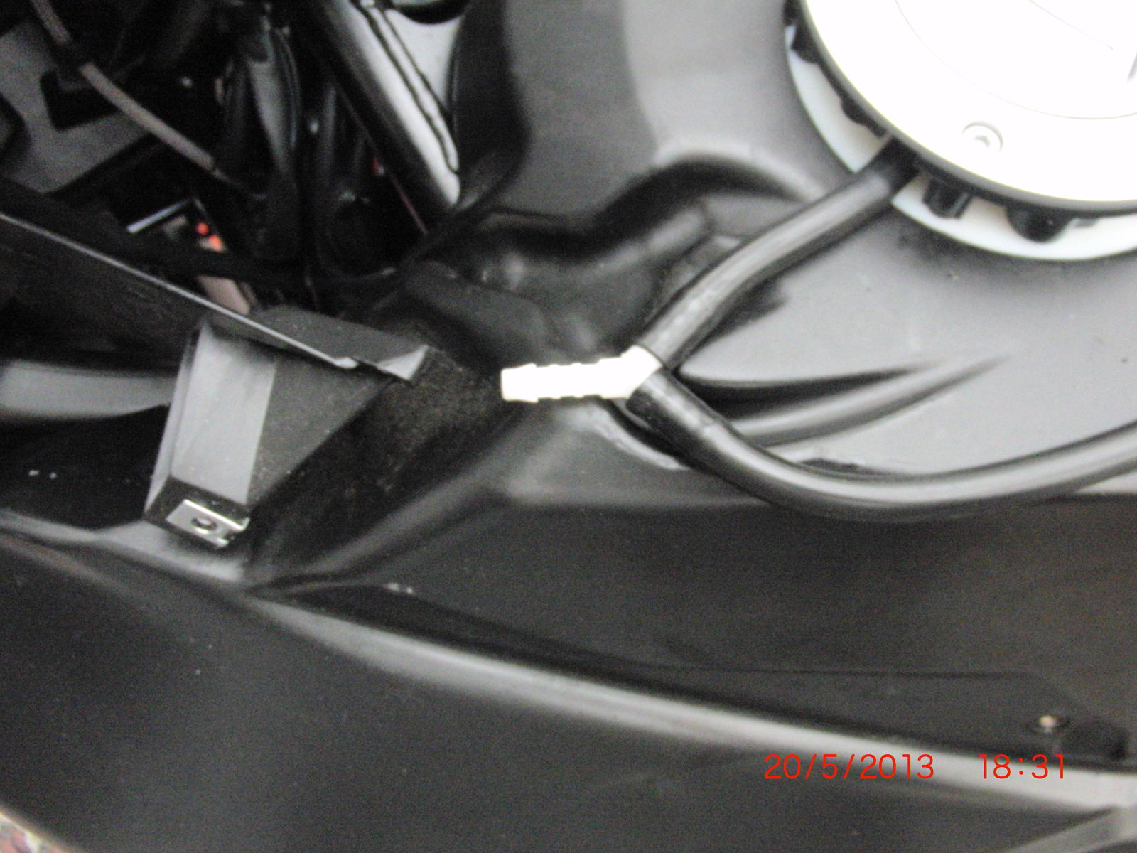 Benzinleitung mittels drücken des Bleches in der Mitte der Abbildung trennen.