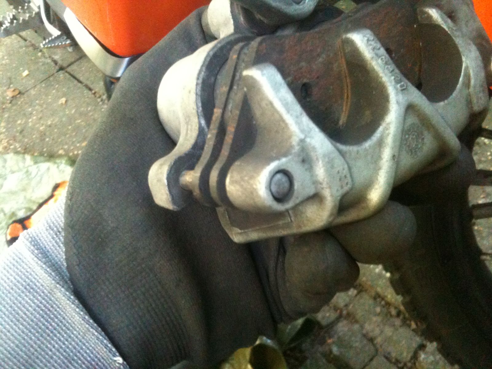 Wenn der Bremssattel noch angeschraubt ist geht's doch viel leichter mit dem rausklopfen, als wenn man ihn festhalten muss........